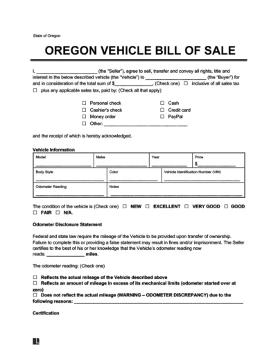 Is a Vehicle Bill of Sale Required in Oregon?
