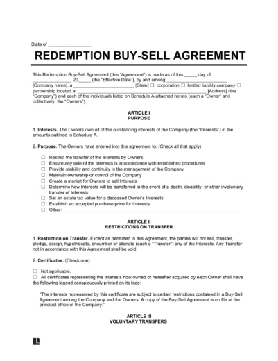 Here’s how a redemption agreement works: