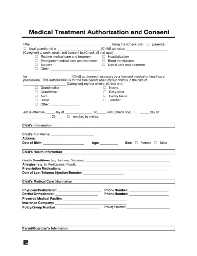 A child’s medical consent form allows a parent or guardian to give a caregiver temporary permission to make medical decisions for their child. The caregiver can step in when the parent or guardian isn’t available, but their authority ends once the parent or guardian is back. A children’s medical consent form typically covers both routine and emergency care. The goal is to make sure a child receives timely treatment when they need it.