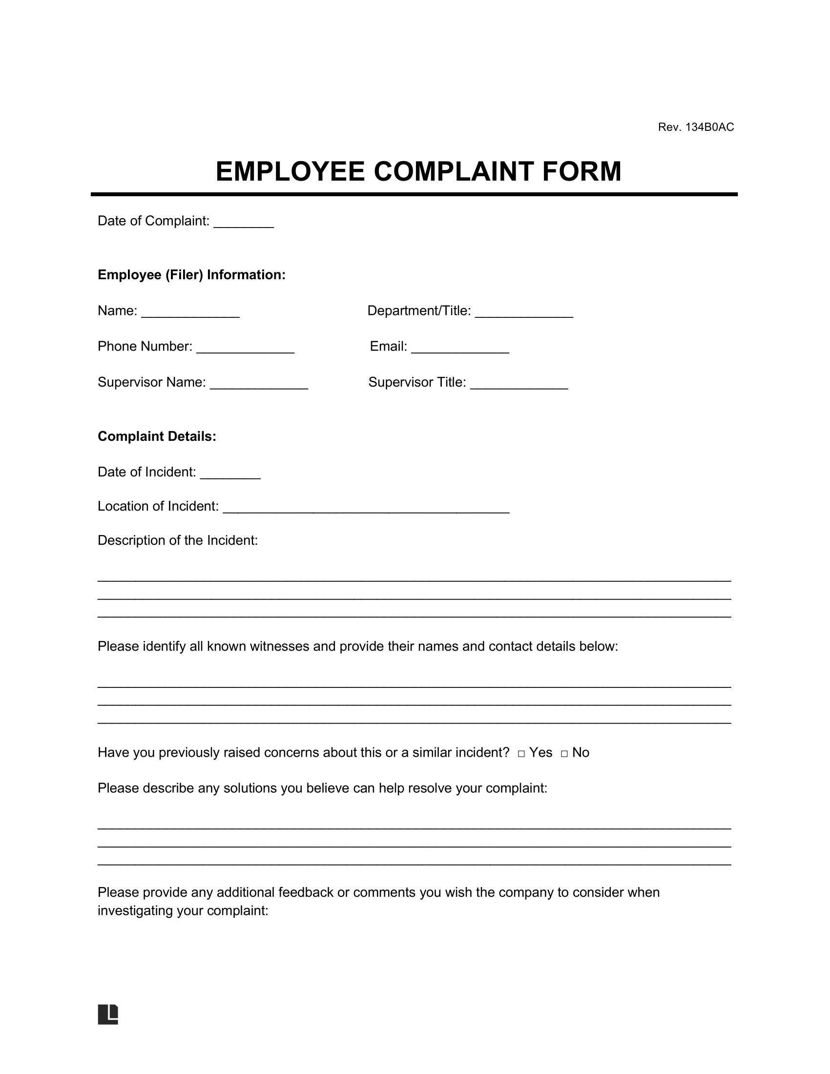 Employee Complaint Form Sample