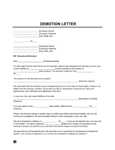 - Document the demotion: A demotion letter serves as official documentation of the change.