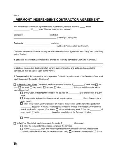 View a Vermont independent contractor agreement template below and download it as a PDF or Word file: