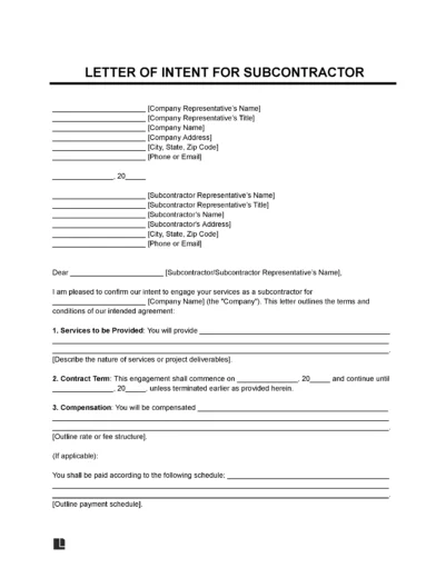 Below, you can download a subcontractor letter of intent template in PDF and Word formats.