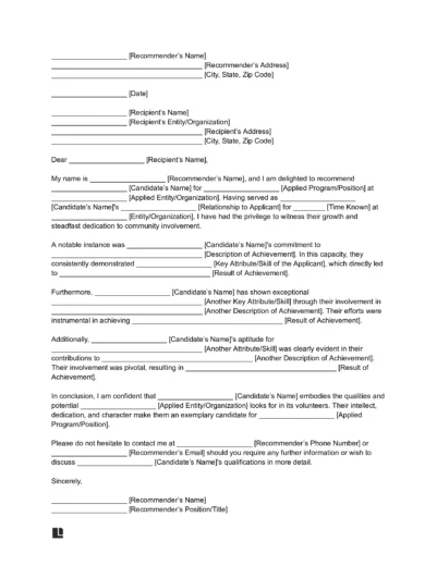 - Review Similar Letters: Look at examples of volunteer recommendation letters to understand the tone and structure. This can serve as a useful guide when drafting your own letter.