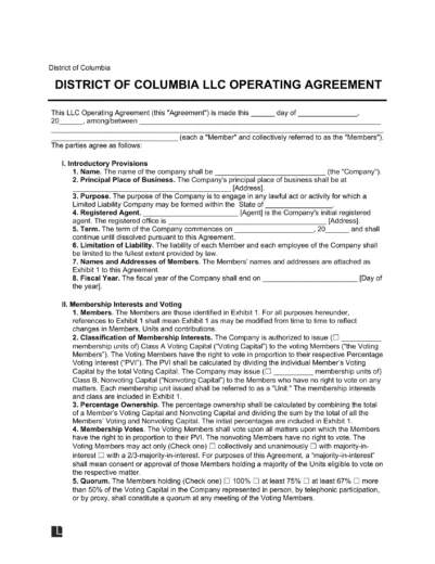 Below is a sample Washington, DC LLC operating agreement. You can customize this template in our editor and download it as a PDF or Word document.