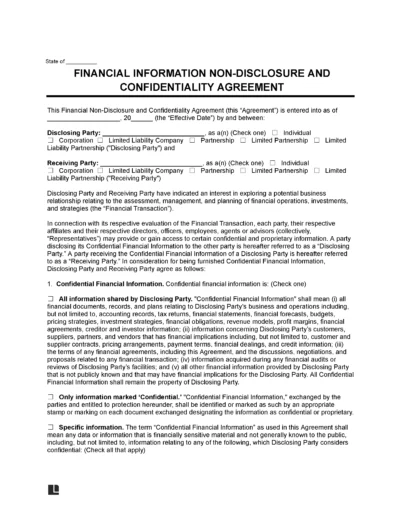 Below, you can download a financial information non-disclosure agreement template in PDF or Word format.