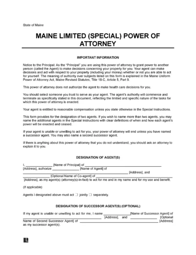 A Maine limited power of attorney is a legal document designed for specific situations or transactions. It grants someone else limited authority over one’s financial decisions and actions.