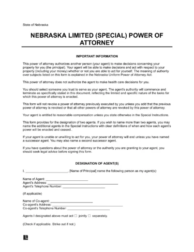 Authority – NE Code § 30-4024 – An agent designated in a power of attorney can represent the principal and carry out specific duties that are clearly defined in the agreement.
