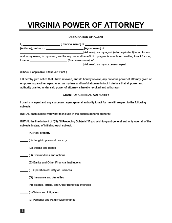 Legal Templates’ free Virginia power of attorney template includes state-compliant terms. Use our forms to create a POA that meets your needs.
